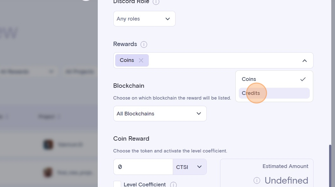 In the next input forms, project managers must set rewards for successfully completing the task. This can be done either in Credits, stablecoins or other tokens.