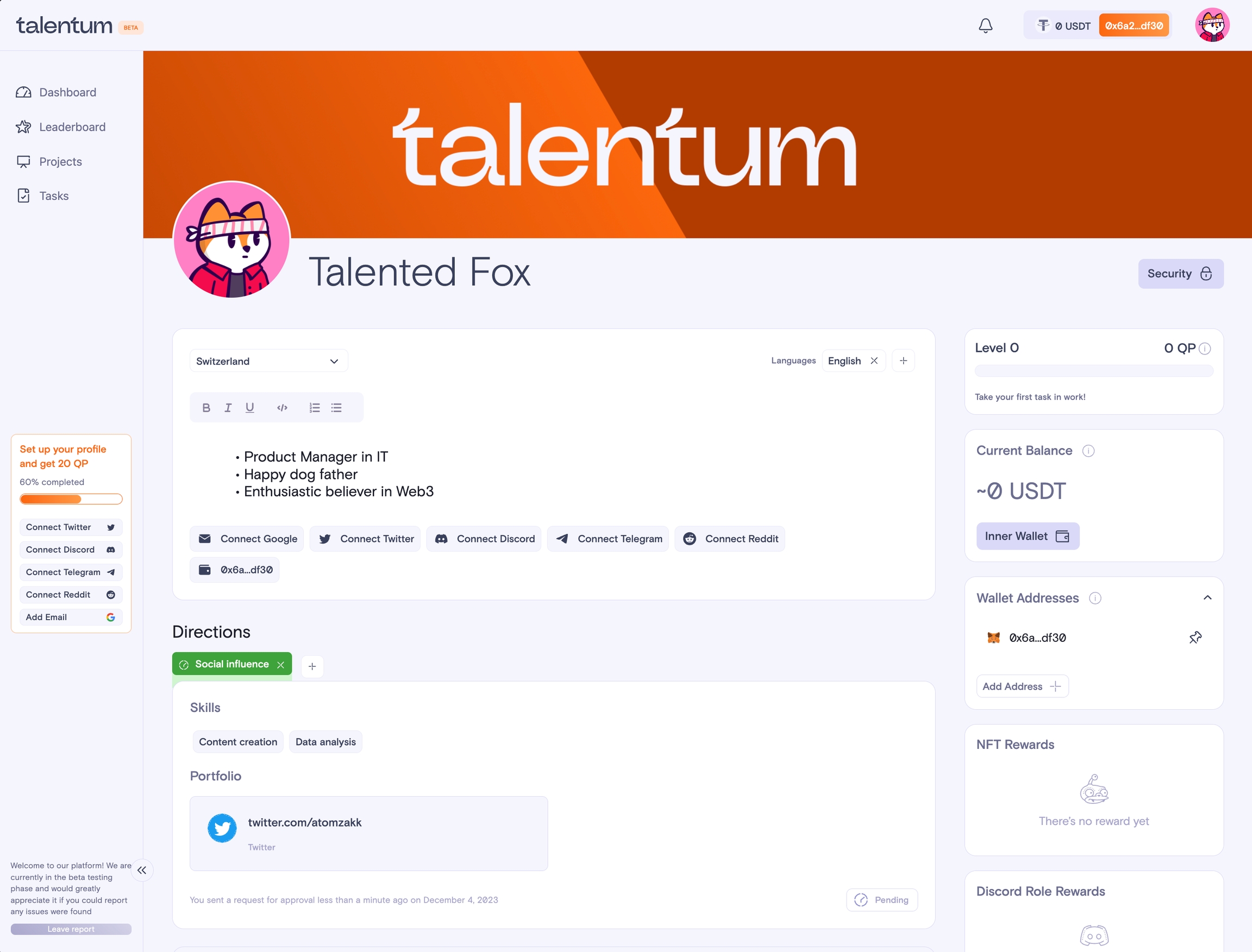 Talents can use their profiles to demonstrate their skills and achievements.